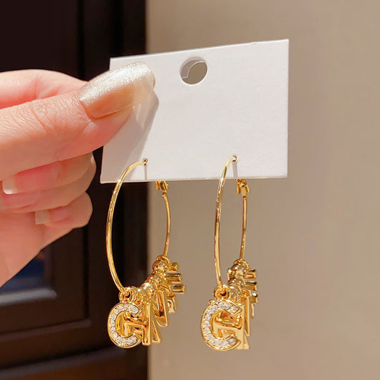ED1338輕奢鑲鑽字母耳圈銀針耳環2024.12.10