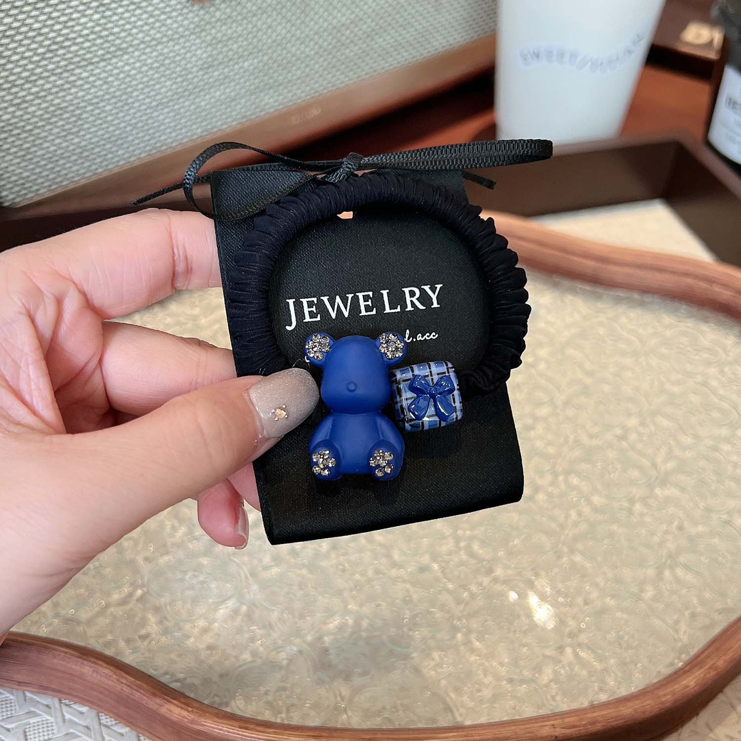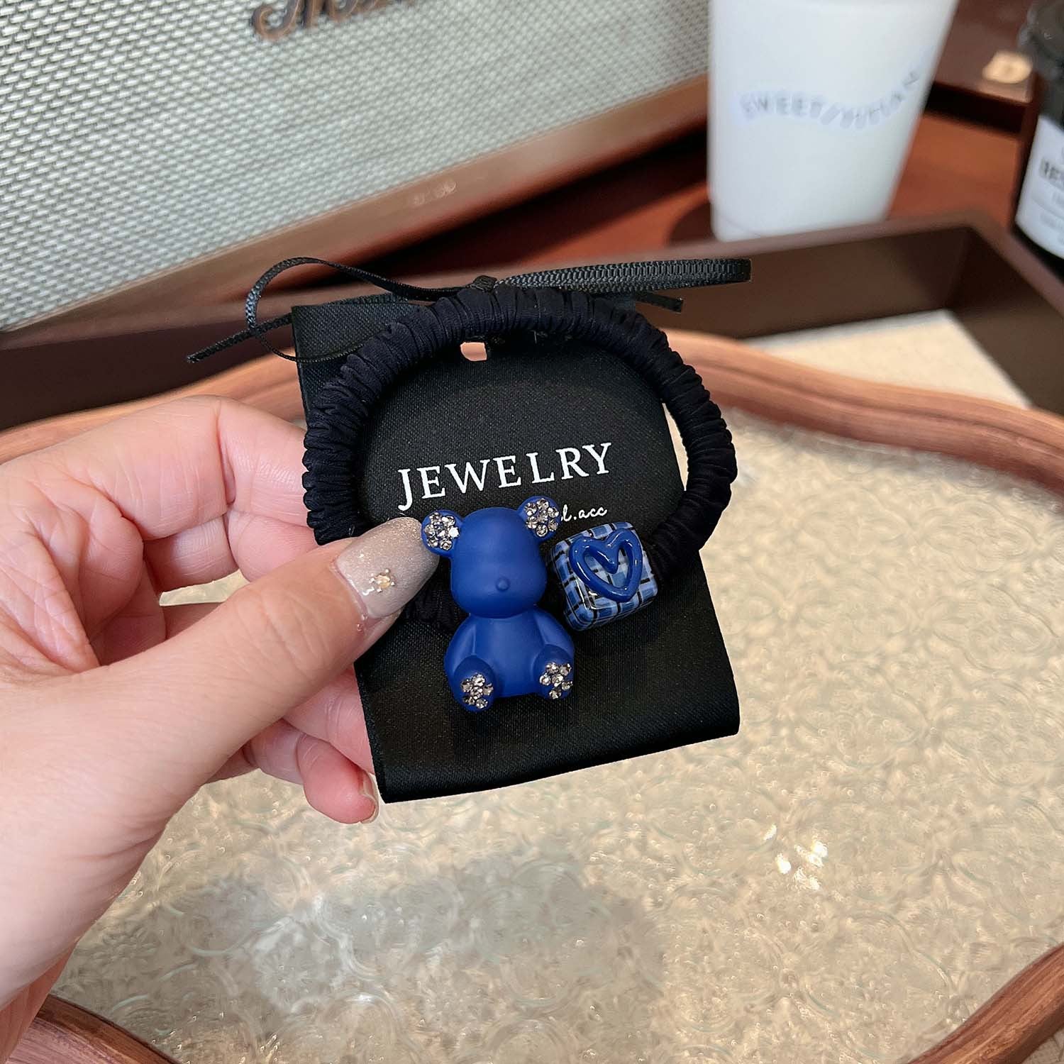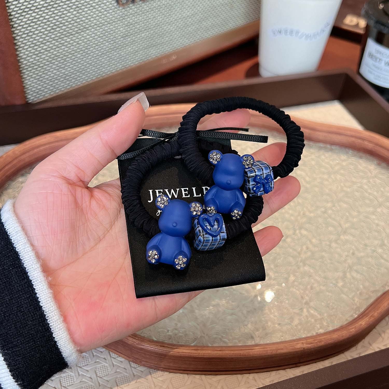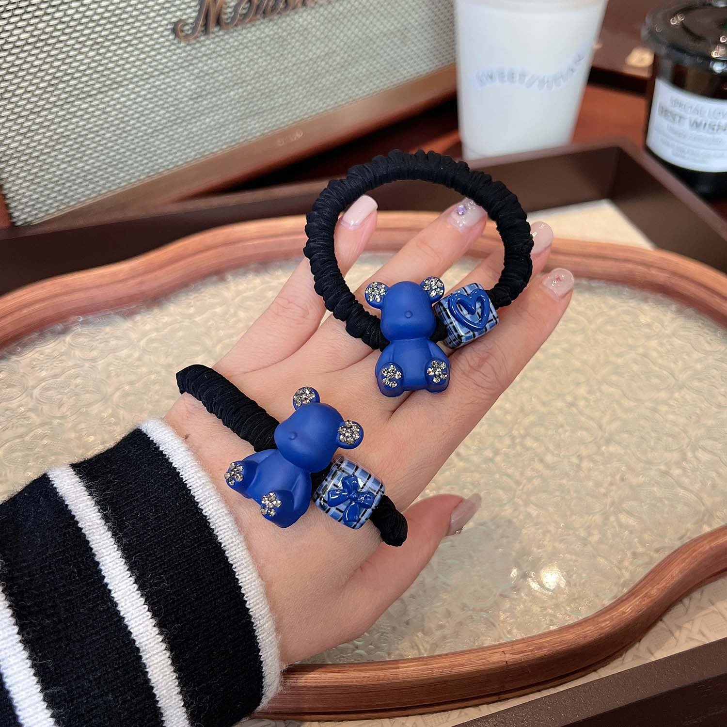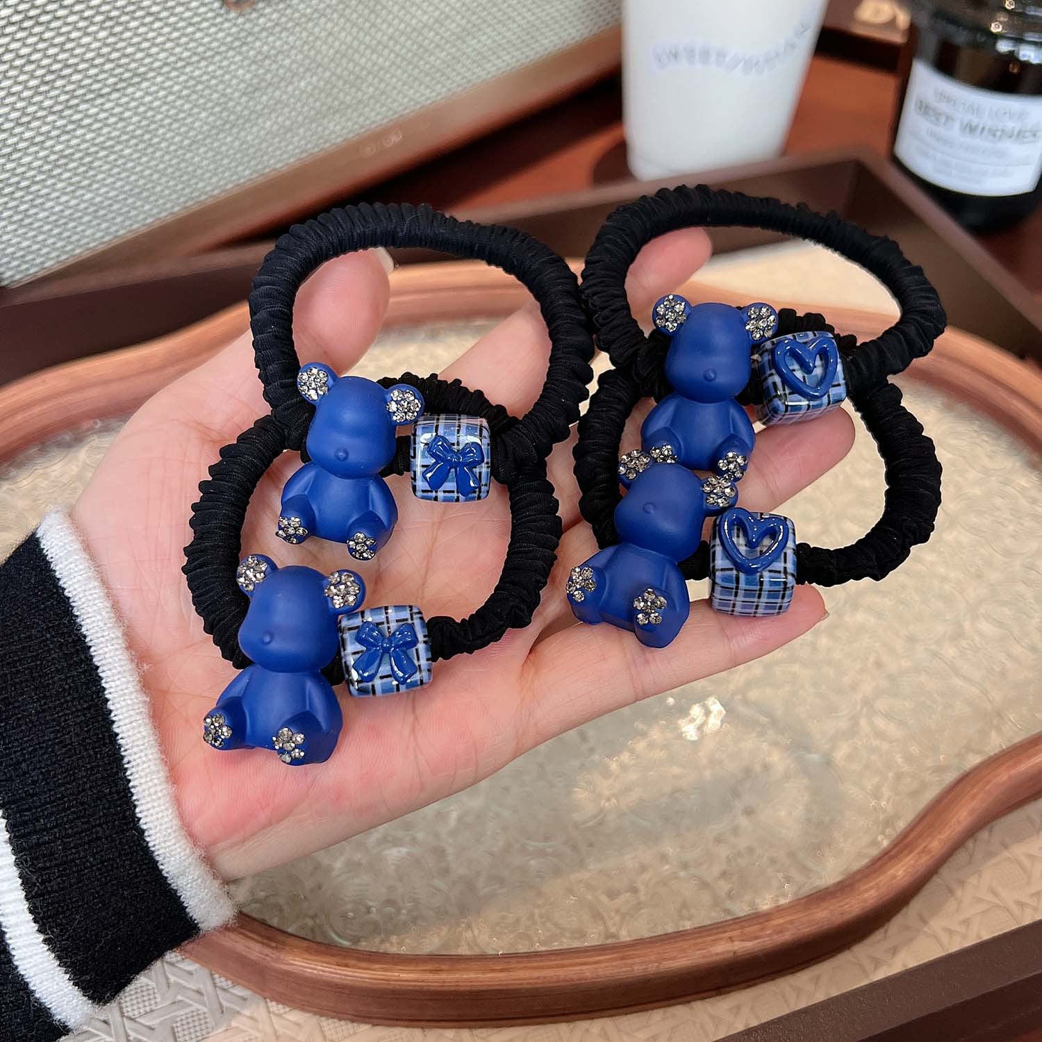 AD6593克萊因藍色小熊愛心領結方塊髮圈2024.12.13