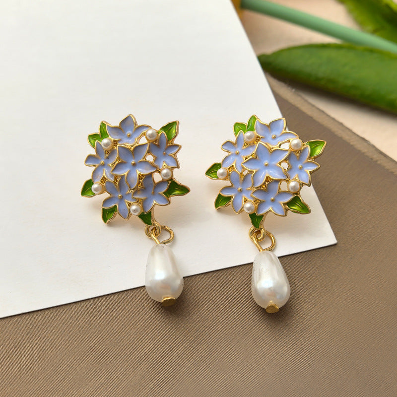 BA7722原創氣質珍珠ins風花朵S925銀針耳釘2024.08.30