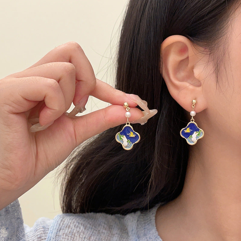 BA7723原創油畫風設計卡通兔子S925銀針耳釘2024.08.30