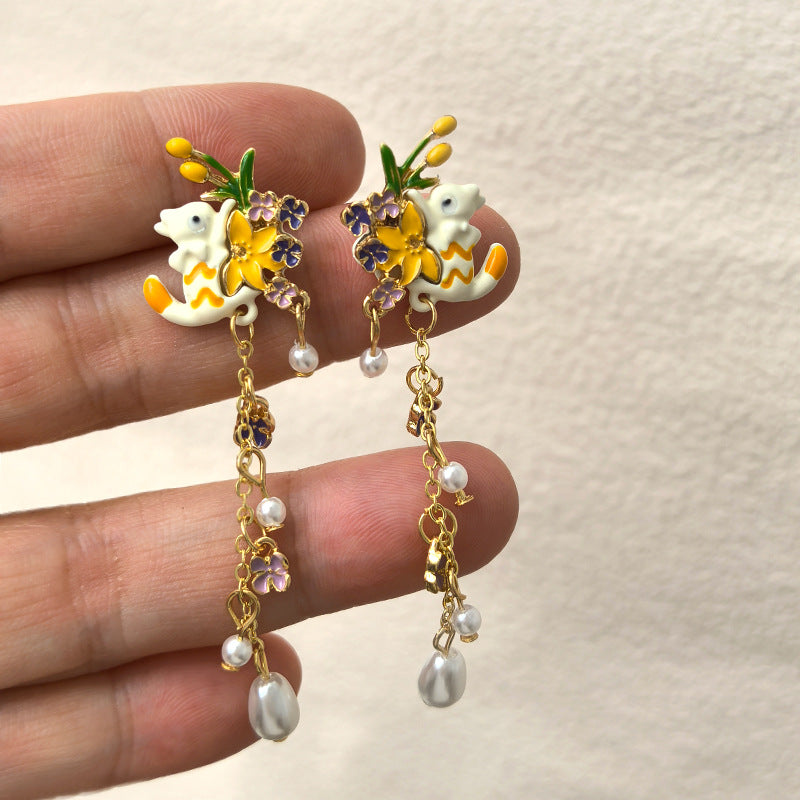 BD7726原創ins風鬱金香花朵珍珠兔子S925銀針耳釘2024.12.03