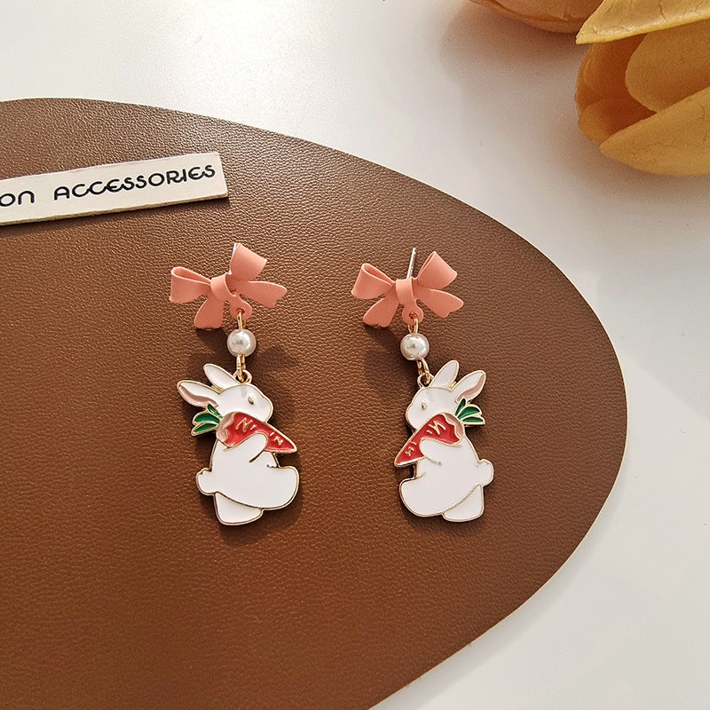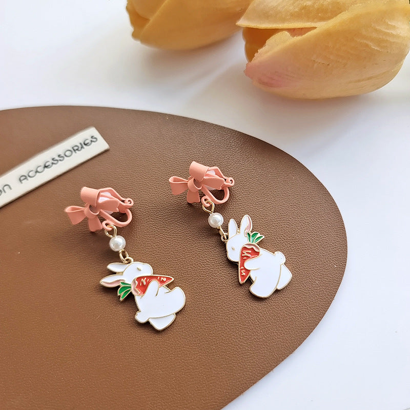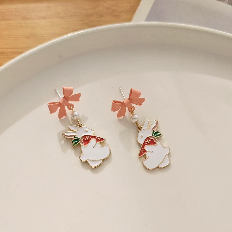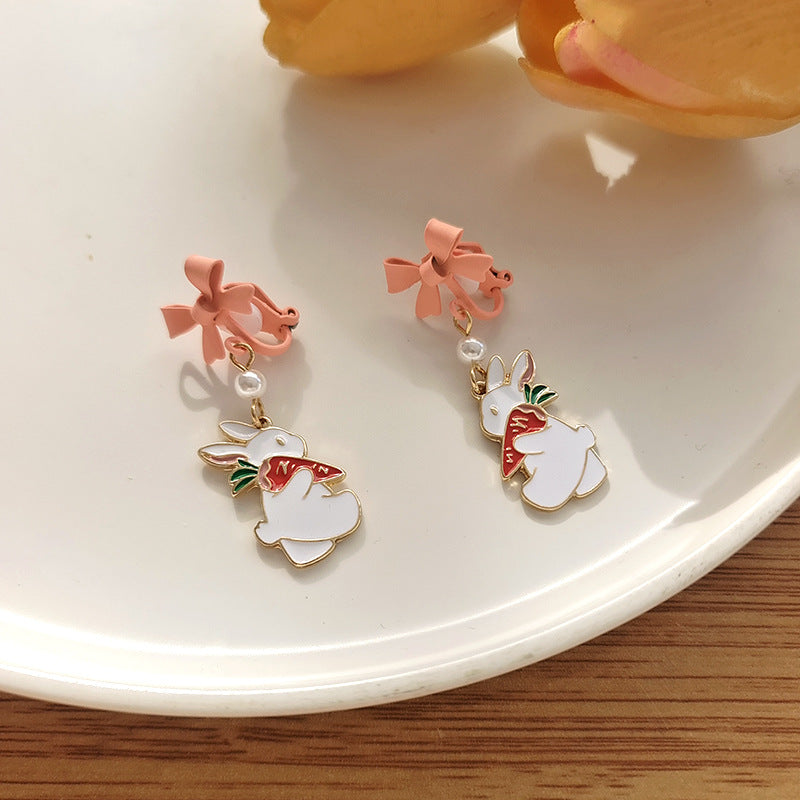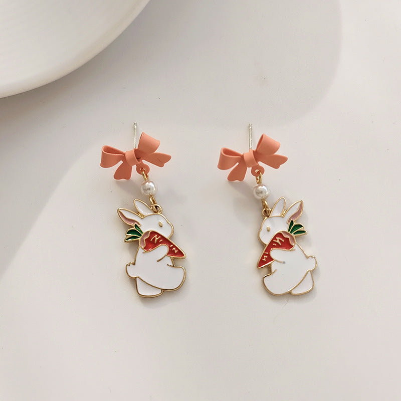 BM6205自主設計蝴蝶結珍珠小兔子胡蘿蔔S925銀針耳釘2023.05.16