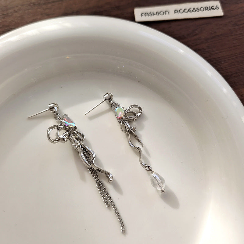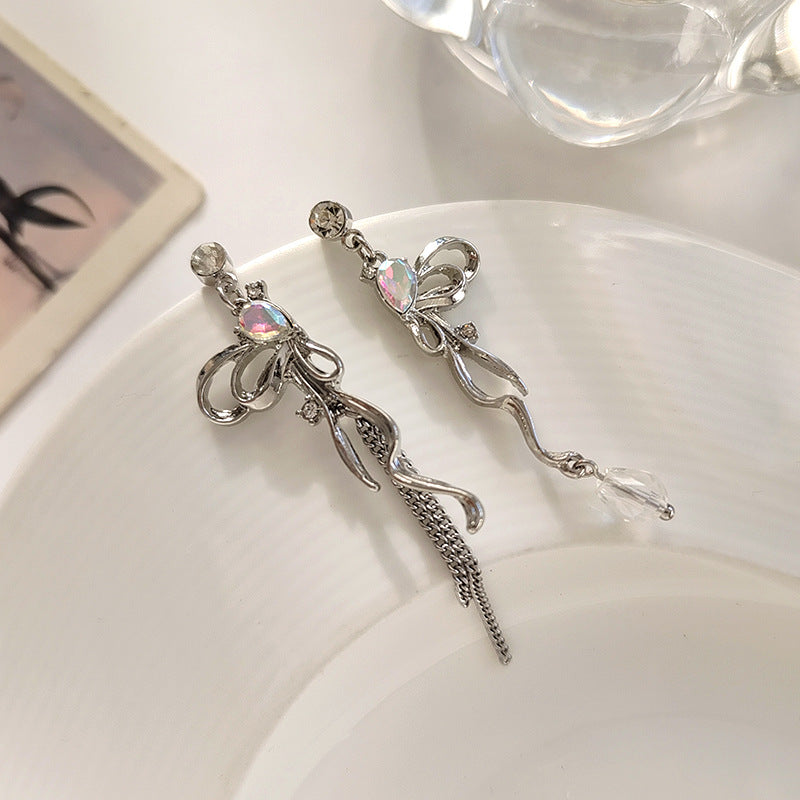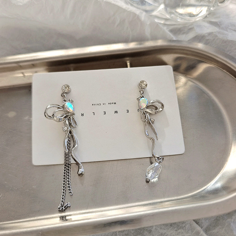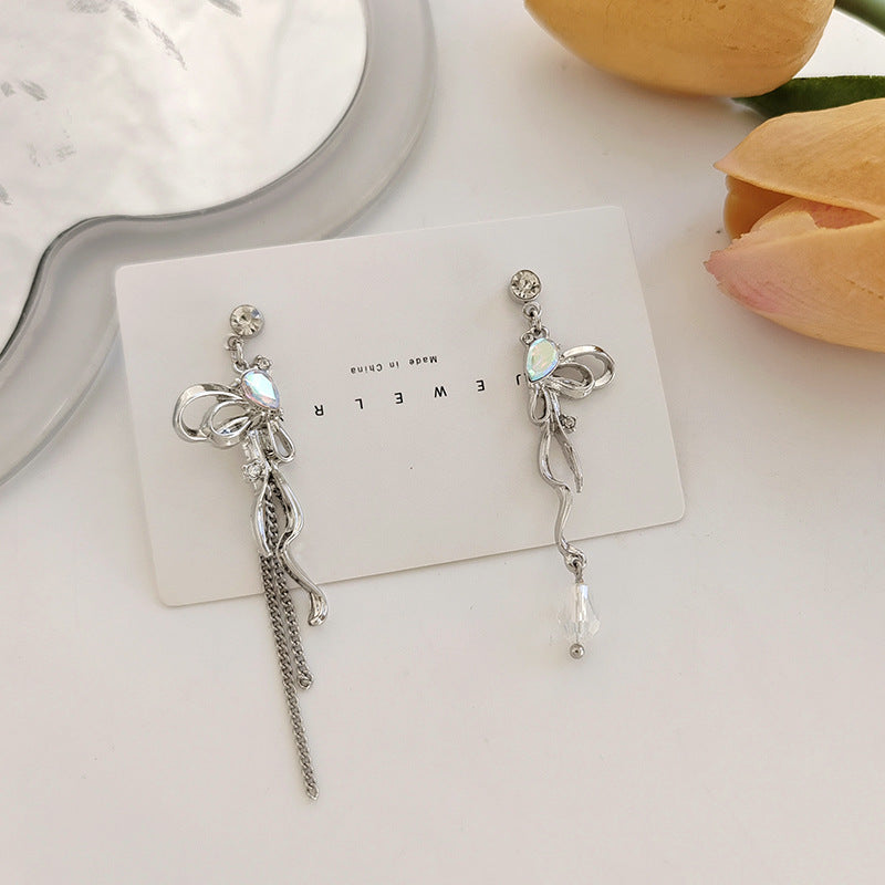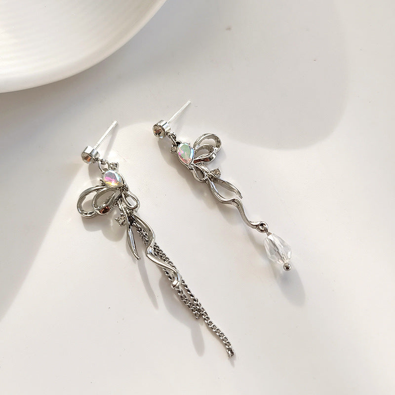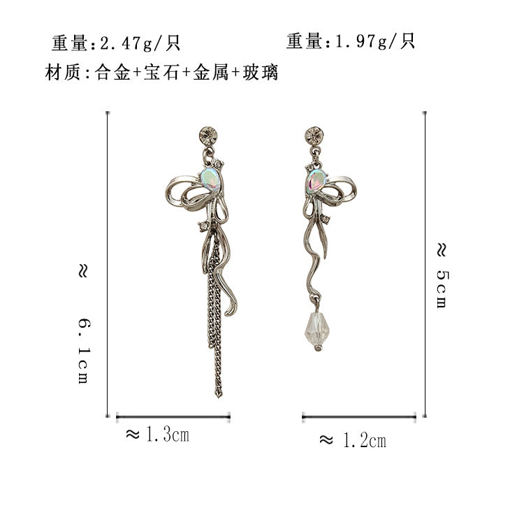 BM6298原創設計長款蝴蝶結玻璃寶石不對稱S925銀針耳釘2023.05.23