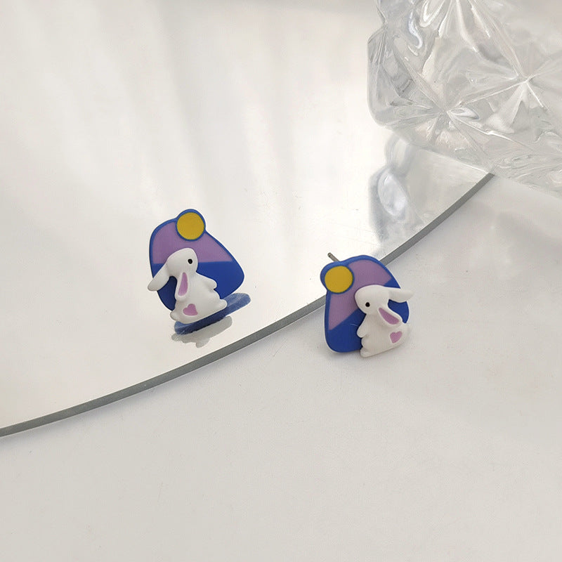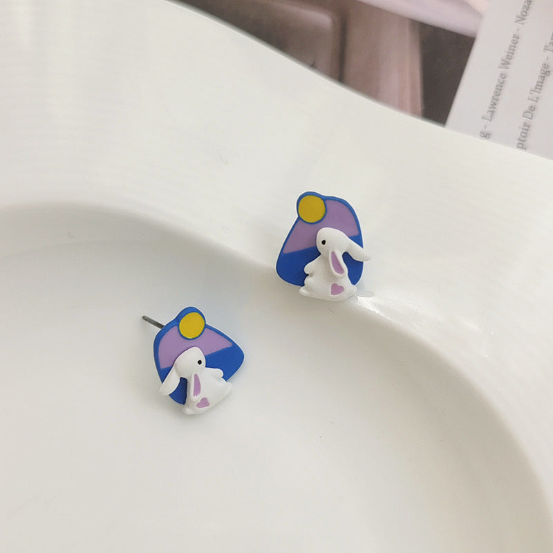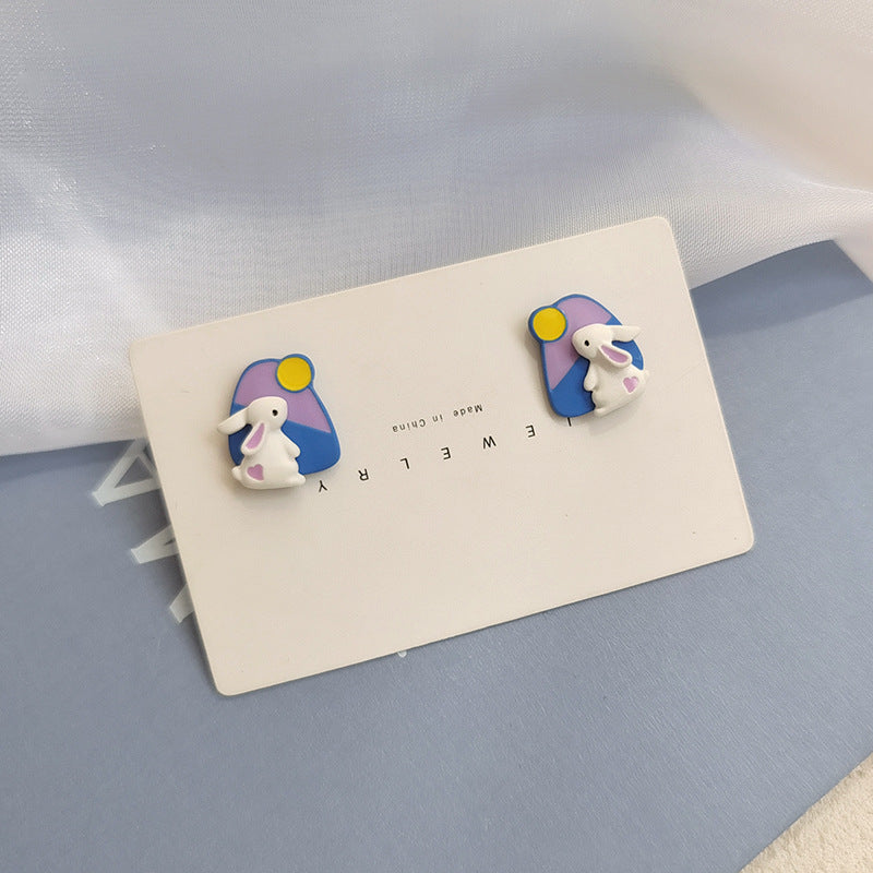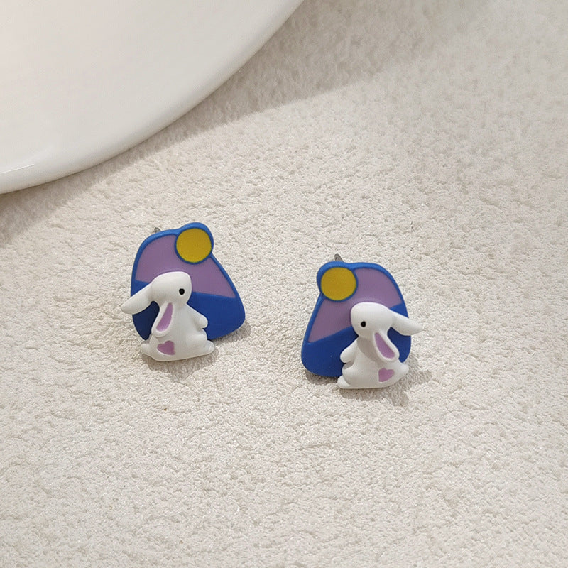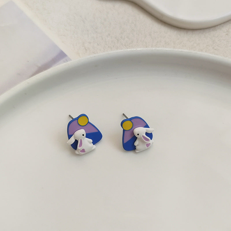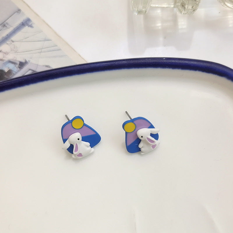 BM6816原創設計可愛撞色立體小白兔S925銀針耳釘2023.05.23