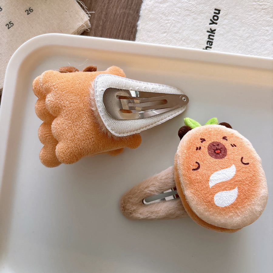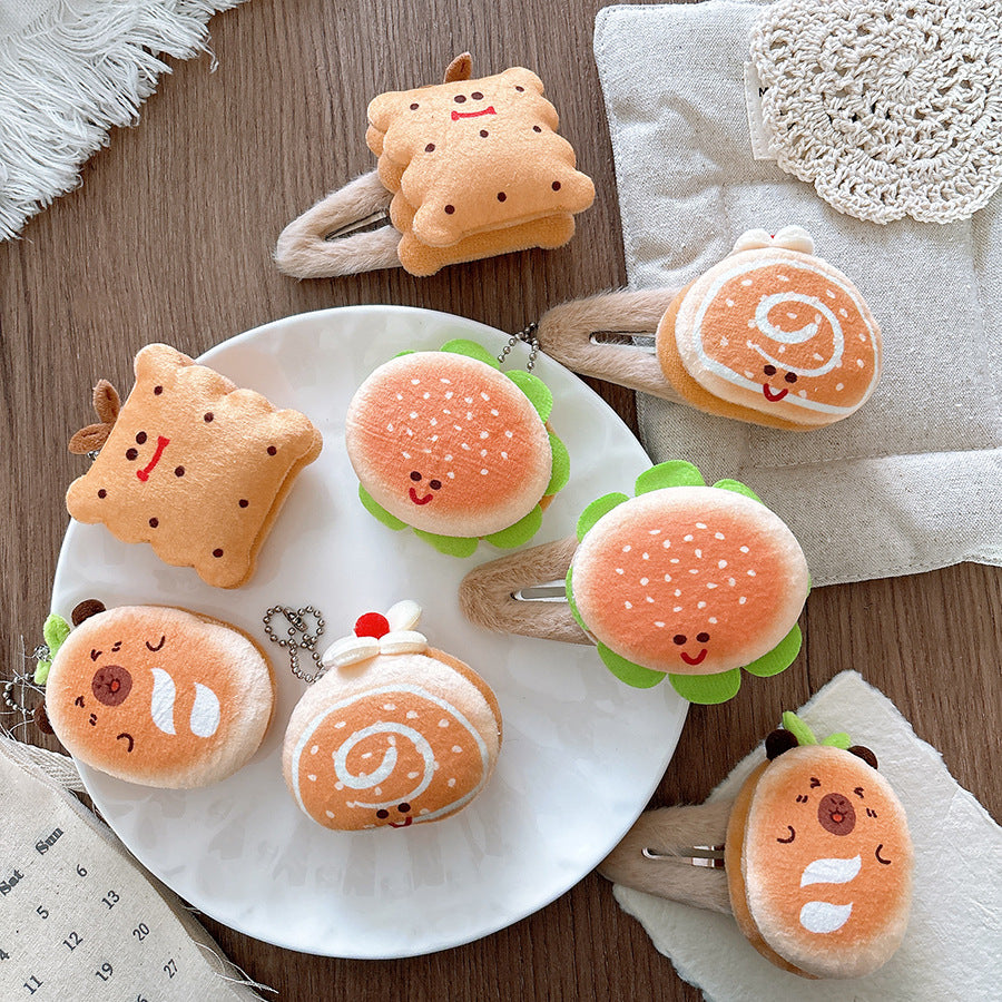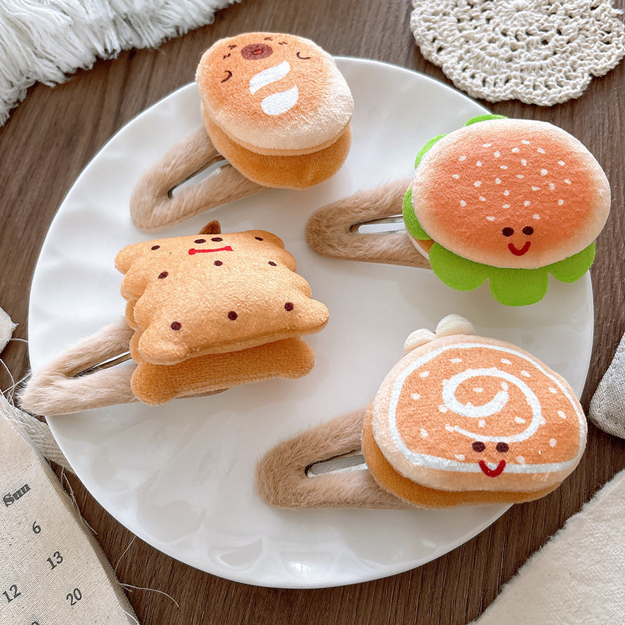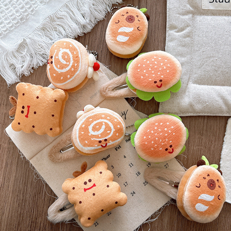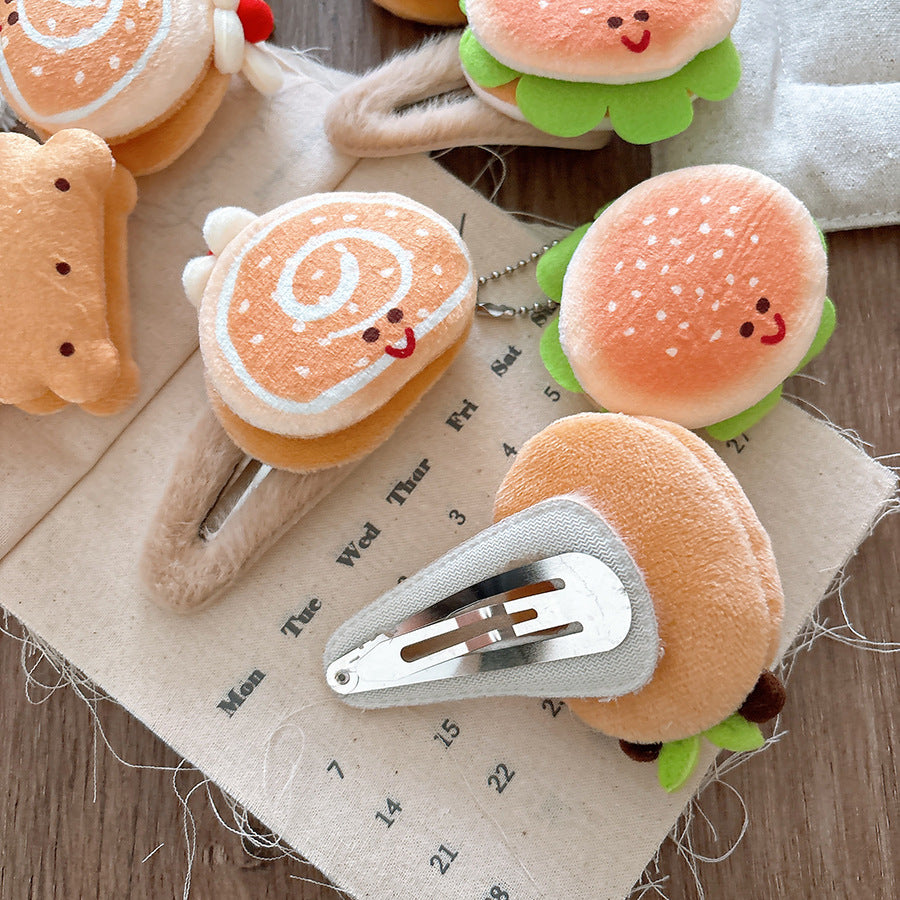 CD1203卡通立體雙層充棉毛絨可愛食玩漢堡麵包髮夾2024.12.06