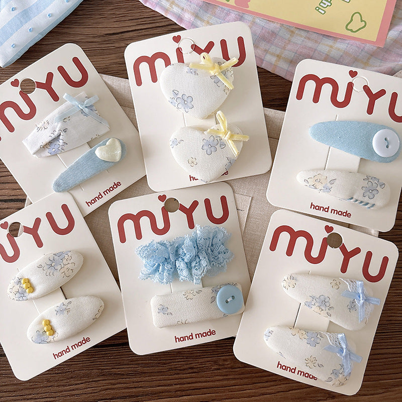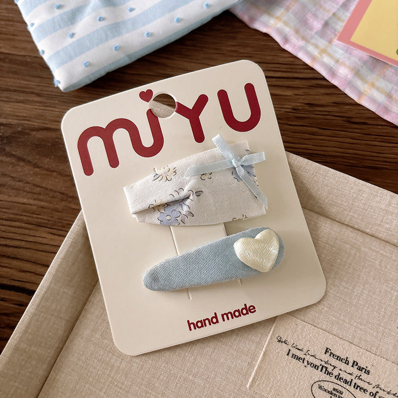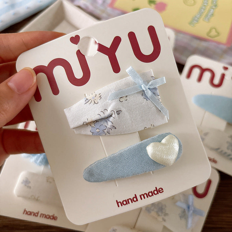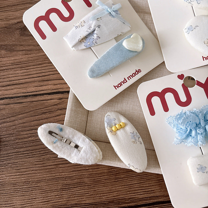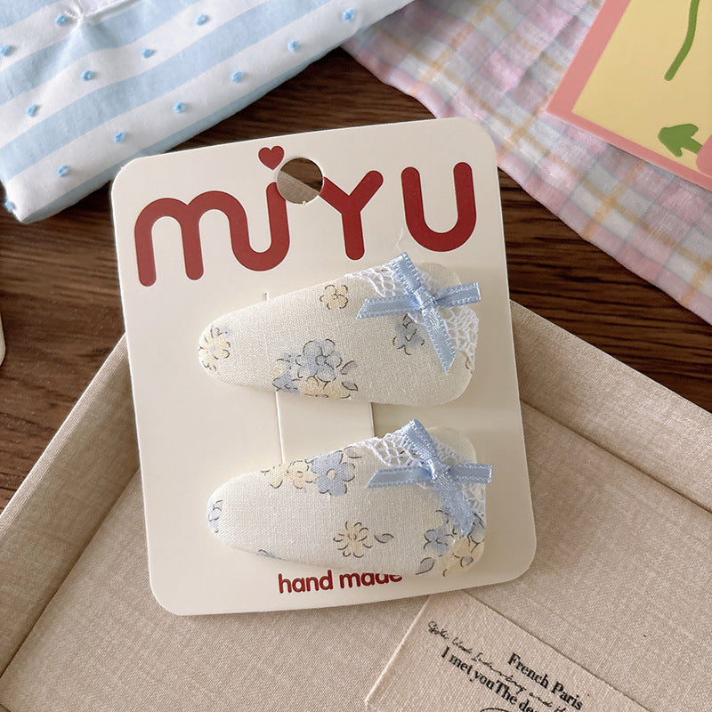 CJ0622韓版甜美海鹽藍碎花布藝蝴蝶結少女心髮夾2025.07.18