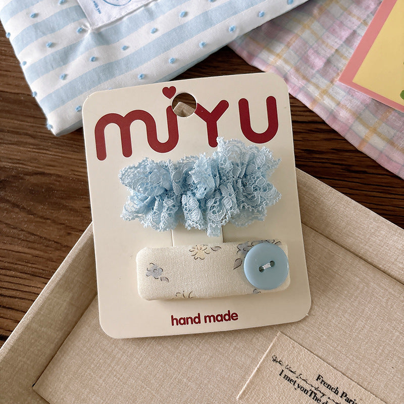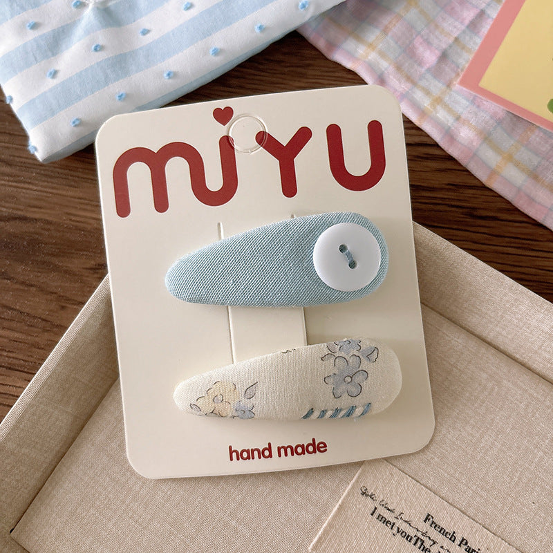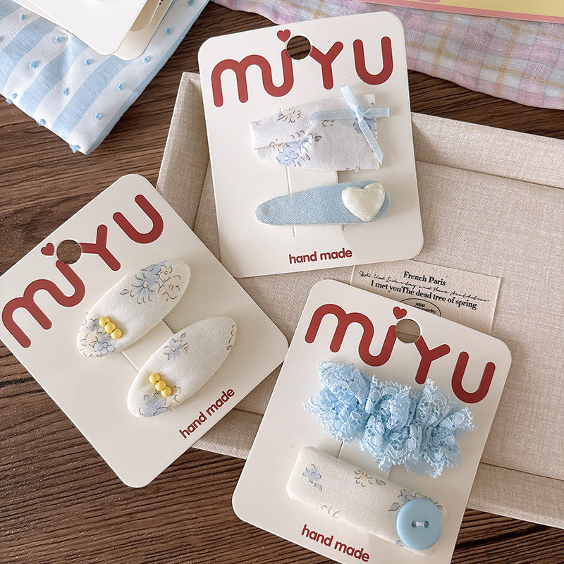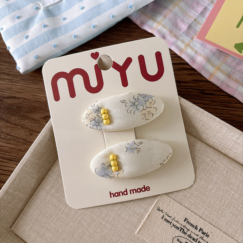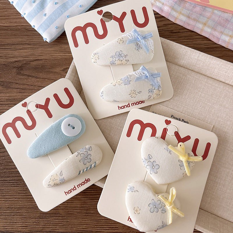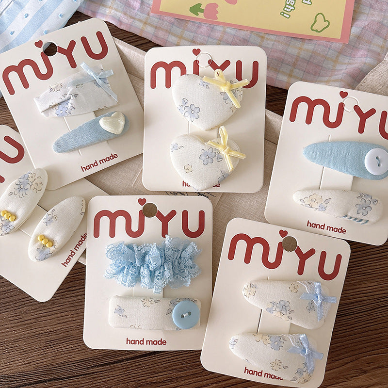 CJ0622韓版甜美海鹽藍碎花布藝蝴蝶結少女心髮夾2025.07.18