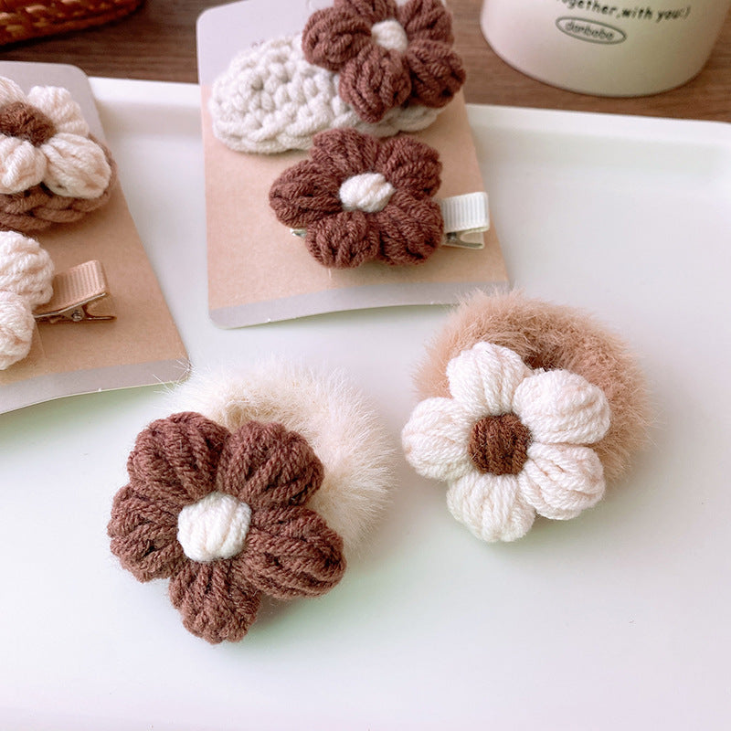 CS0910韓版針織毛線米咖色花朵髮夾2023.09.12