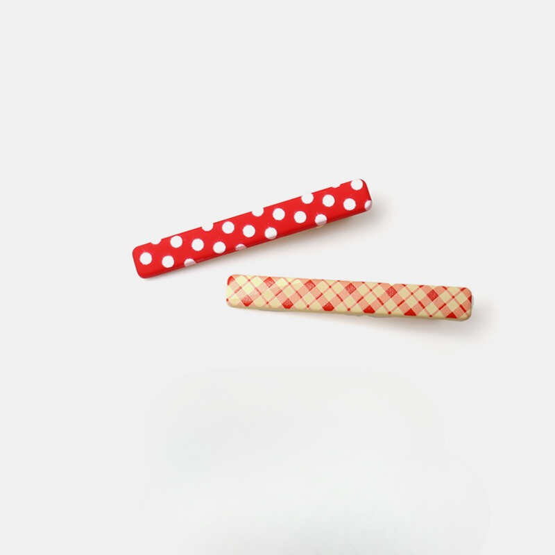 GJ2008甜美優雅日系少女心紅色格子波點側邊髮夾2024.06.04