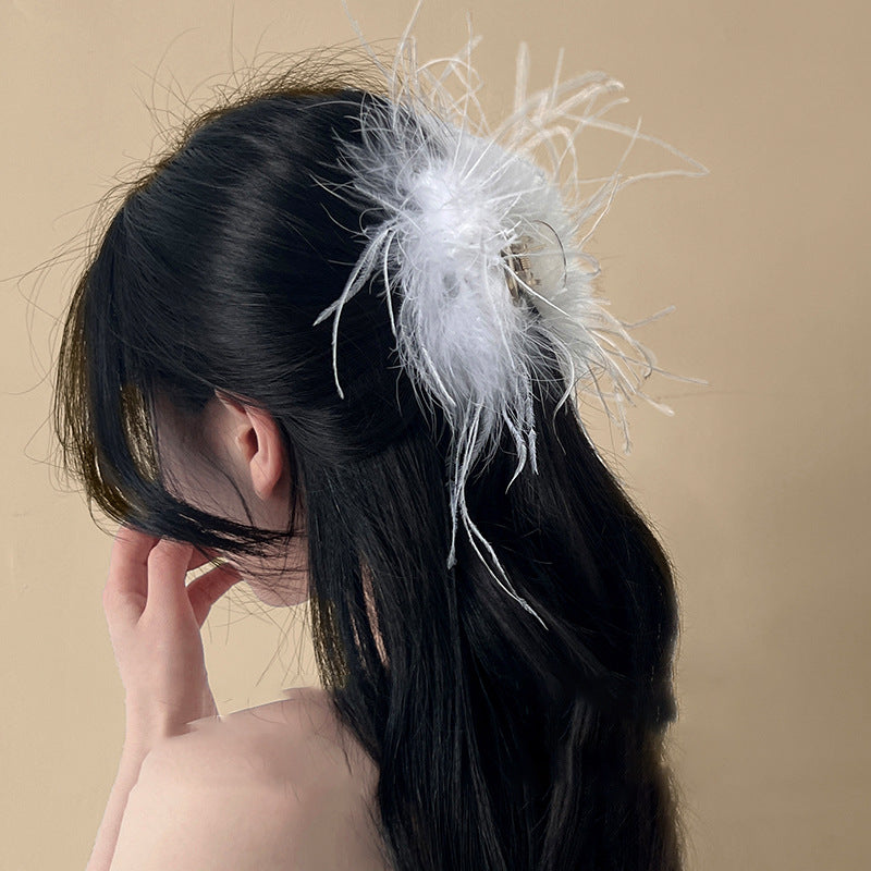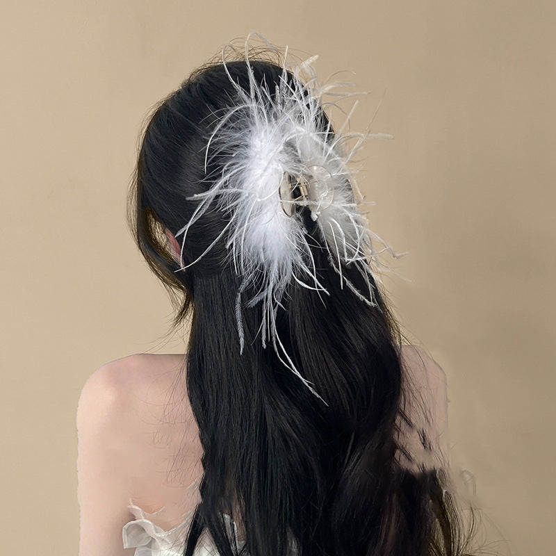 HO2399超仙白色鴕鳥毛髮夾2022.10.18
